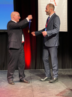 Mr Taylor handing over his President's Medal to Paul Halliwell - the incoming President of BOFAS