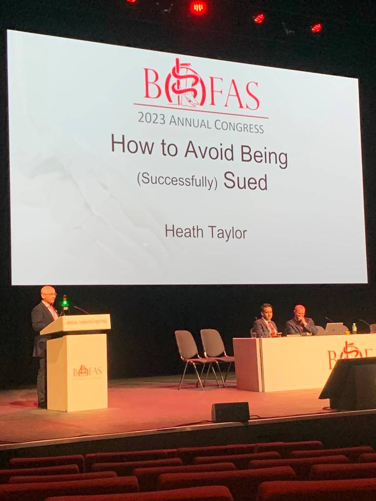 Mr Taylor can be seen here giving a medico-legal talk entitled "How to avoid being successfully sued". The talk was very well received and feedback was excellent.